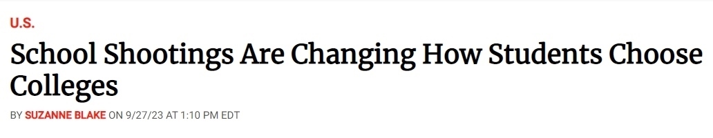 也是由于校園槍擊事件的日漸頻繁,美國(guó)學(xué)生選擇大學(xué)的方式也隨之發(fā)生變化。據(jù)美國(guó)《新聞周刊》(News Week)網(wǎng)站27日?qǐng)?bào)道,僅在2023年,全美就發(fā)生了53起校園槍擊事件。“槍支暴力檔案”(Gun Violence Archive)的數(shù)據(jù)顯示,各類與槍支有關(guān)的死亡總共有3萬多起。