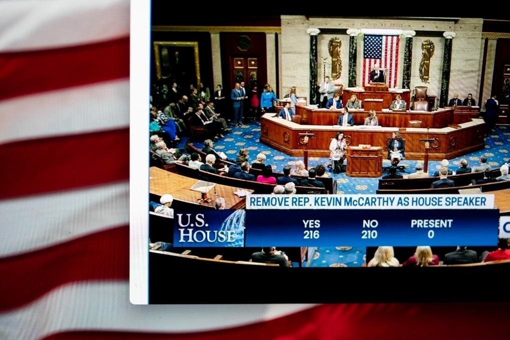 眾議院3日以216票贊成、210票反對的結(jié)果通過罷免麥卡錫的決議。這項(xiàng)決議由共和黨籍眾議員馬特·蓋茨提出,他和另外7名共和黨人以及全部參與表決的208名民主黨人一起投下贊成票。