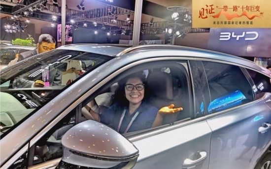 ▲ 記者在智博會(huì)體驗(yàn)中國新能源汽車
