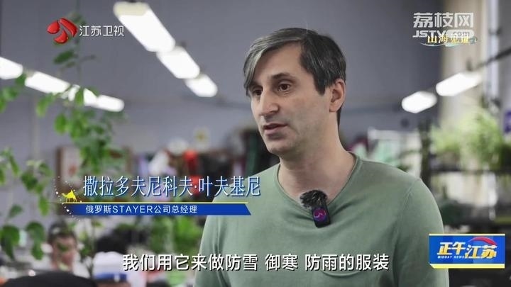 俄羅斯STAYER公司總經(jīng)理撒拉多夫尼科夫·葉夫基尼說(shuō):“這都是剛從中國(guó)運(yùn)過(guò)來(lái)的布料,它們具有防水性,透氣性,我們用它來(lái)做防雪、御寒、防雨的服裝。所有人都贊成中國(guó)的布料越來(lái)越好,近三年的計(jì)劃是加強(qiáng)與合作伙伴的聯(lián)系,擴(kuò)大布料的購(gòu)買量,期待有好的發(fā)展。”