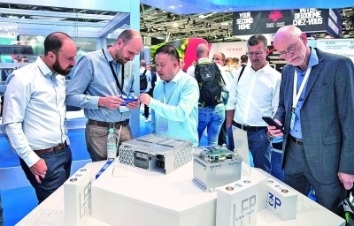 9月5日,人們?cè)诘聡?guó)慕尼黑國(guó)際車(chē)展上與中國(guó)展商洽談。新華社發(fā)