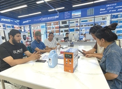 最近,埃馬紐埃爾又開始關(guān)注新能源產(chǎn)品?!翱溌∫恍┑胤酱嬖陔娏Χ倘?、供電不穩(wěn)的問題,很多當(dāng)?shù)厝讼M夷茉谥袊?guó)找到合適的產(chǎn)品?!睘榇?,他把目標(biāo)瞄準(zhǔn)了義烏國(guó)際商貿(mào)城的新能源產(chǎn)品市場(chǎng),尋找到一些適合喀麥隆的光伏設(shè)備?!爸袊?guó)的新能源產(chǎn)品性能可靠、性價(jià)比高,產(chǎn)品品類覆蓋領(lǐng)域廣泛。”埃馬紐埃爾表示,大到醫(yī)療機(jī)構(gòu),小到禽畜養(yǎng)殖場(chǎng),中國(guó)光伏設(shè)備供應(yīng)的電力有助于滿足當(dāng)?shù)孛癖娚a(chǎn)生活的用電需求。
