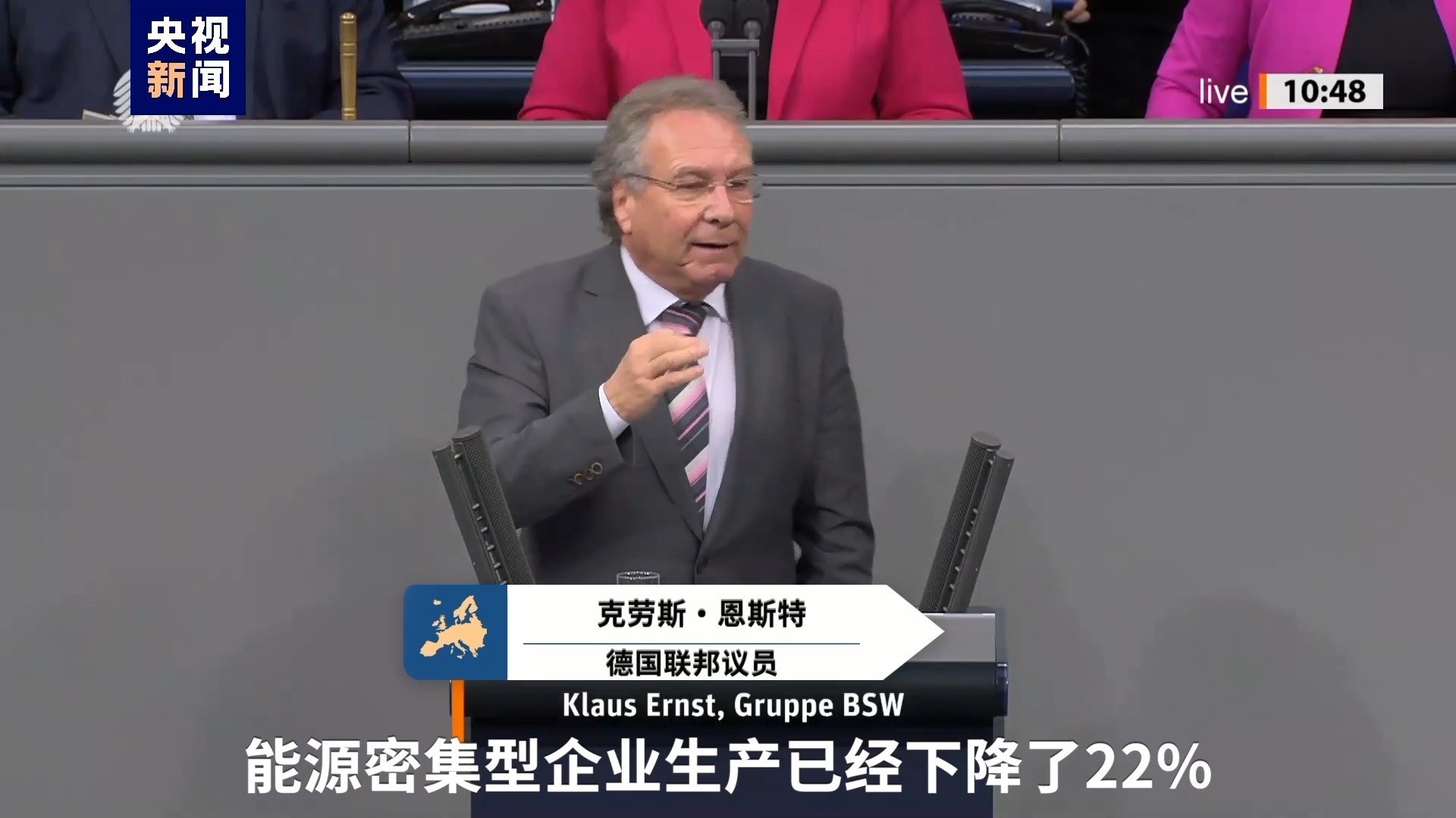 德國聯(lián)邦議員 克勞斯·恩斯特:我們確切地知道,能源密集型企業(yè)生產(chǎn)已經(jīng)下降了22%。這個下降并不是憑空捏造的。我們目前對于能源密集型企業(yè)的能源定價已經(jīng)達到了它們無法承擔(dān)、不愿支付的水平。因此,它們自然會嘗試將生產(chǎn)轉(zhuǎn)移到其他國家,例如美國。