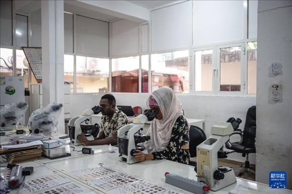 這是2024年1月11日拍攝的位于科摩羅首都莫羅尼的科摩羅國(guó)家瘧疾防治中心實(shí)驗(yàn)室。新華社記者 王冠森 攝