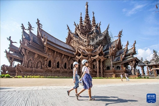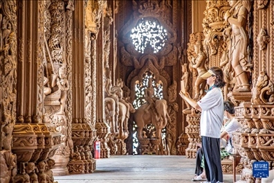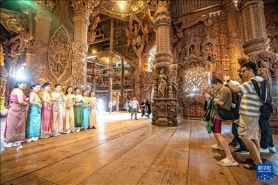 3月29日,游客在泰國(guó)芭堤雅真理圣殿游覽。新華社記者 王騰 攝