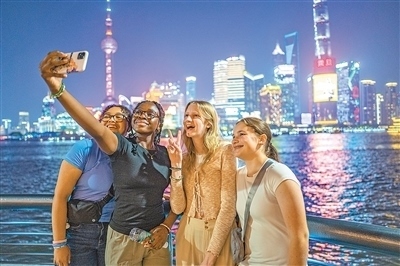 在上海外灘,馬斯卡廷中學(xué)學(xué)生拍照留念。王 初攝(人民視覺(jué))
