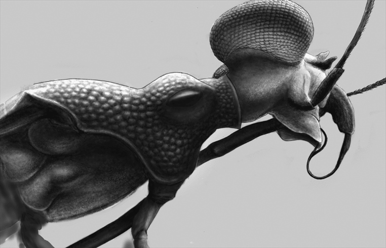 聲明說(shuō),研究人員在研究采自緬甸北部山谷一個(gè)琥珀礦的白堊紀(jì)中期化石標(biāo)本時(shí)發(fā)現(xiàn)了一種昆蟲,其眼睛尺寸異常大,體色圖案復(fù)雜,且有明顯擴(kuò)展的盾片。此外,它的翅膀上有獨(dú)立的前緣脈和亞前緣脈。研究人員認(rèn)為,這種昆蟲的顏色和獨(dú)特形狀也許可以威懾捕食者。