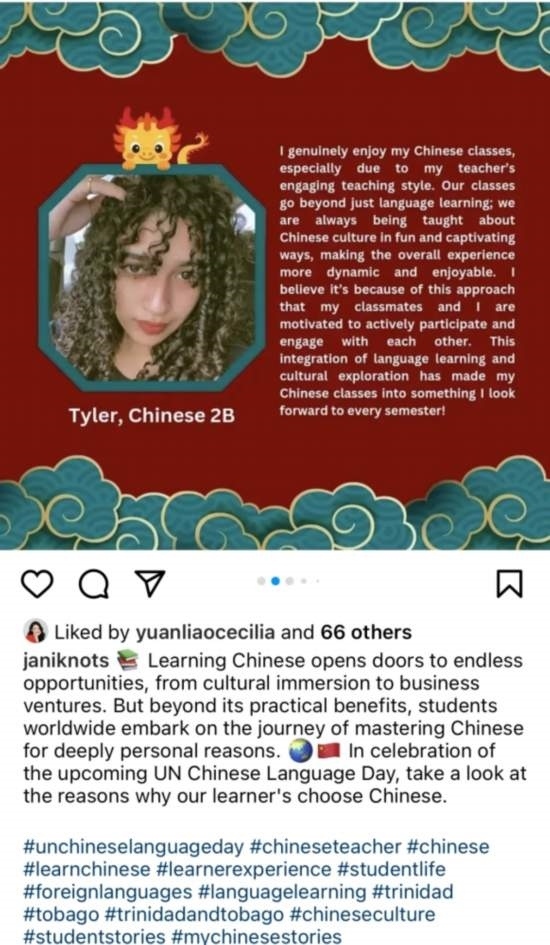 第十五個(gè)聯(lián)合國中文日和第五個(gè)“國際中文日”舉辦期間,中外語言交流合作中心與中國日報(bào)網(wǎng)聯(lián)合發(fā)起 “國際中文日”系列線上活動,鼓勵(lì)大家講述、分享與中文相遇的精彩故事,半個(gè)月內(nèi)活動參與者覆蓋全球五大洲近70個(gè)國家和地區(qū),包括英國、意大利、澳大利亞、美國、巴西、日本、韓國、泰國、老撾、迪拜、喀麥隆等,作品超2000件,閱讀量超1000萬,在中國和其他國家主流社交媒體平臺掀起“中文日”熱潮,吸引了海內(nèi)外網(wǎng)友的廣泛關(guān)注。