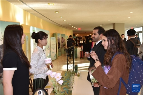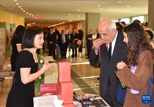 5月21日,在位于紐約的聯(lián)合國總部,人們參加“茶和天下”國際茶日展示和慶?;顒?。新華社記者 王建剛 攝