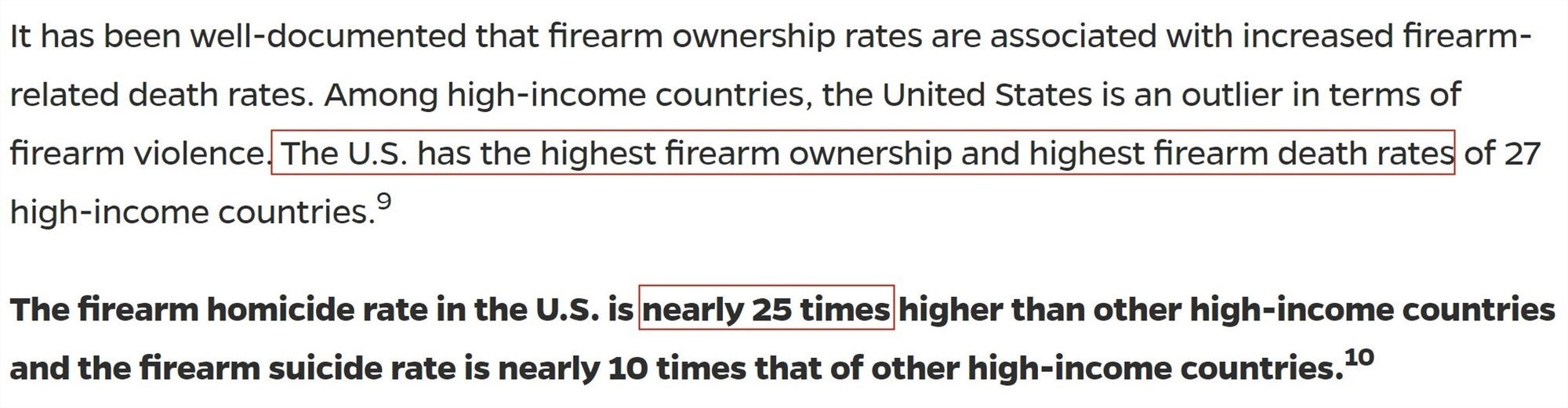△約翰斯·霍普金斯大學槍支暴力解決方案中心官網(wǎng):數(shù)據(jù)表明,槍支擁有率與槍支相關(guān)的死亡率上升密切相關(guān)。在高收入國家中,美國的槍支擁有率和槍支引發(fā)的死亡率最高,是其他高收入國家的近25倍。