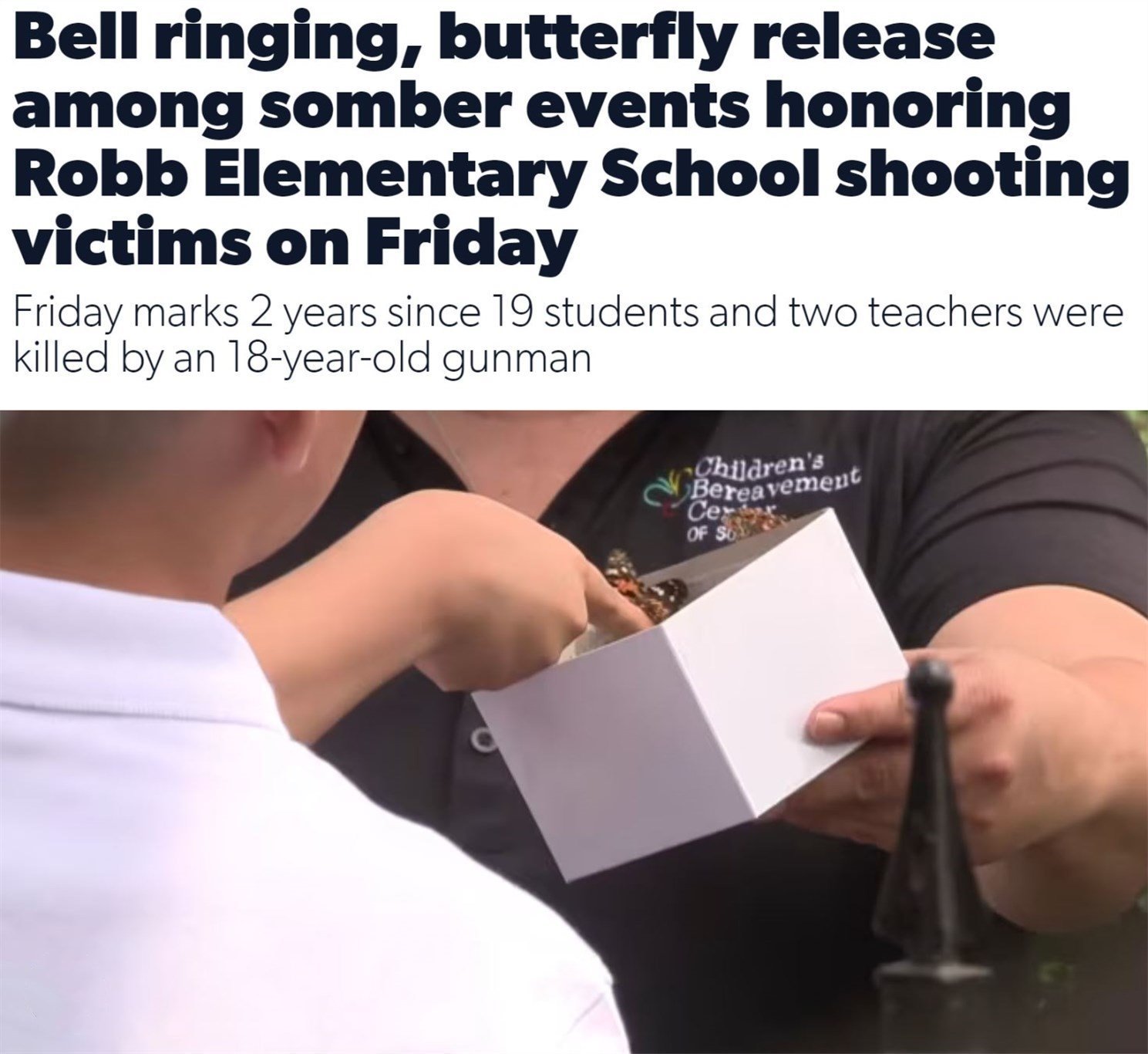 △美國廣播公司旗下KSAT網(wǎng)站:當?shù)孛癖?4日通過放飛蝴蝶的方式悼念遇難師生