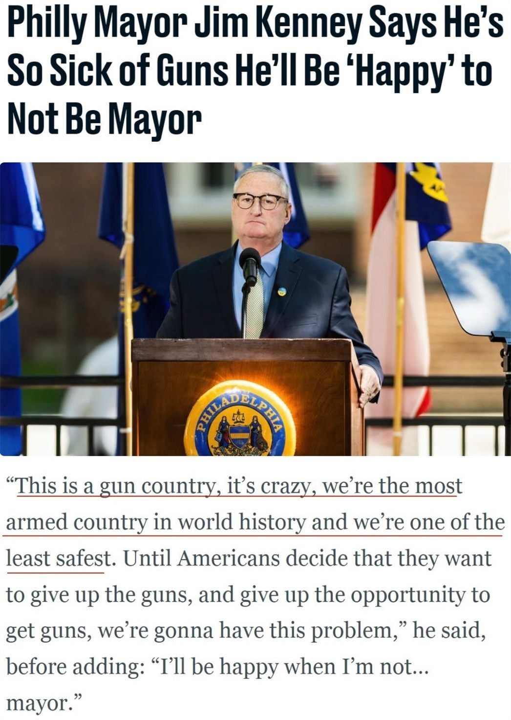 對于如此夸張的數(shù)據(jù),美國費城前任市長吉姆·肯尼曾無奈地感嘆,美國是槍支王國。