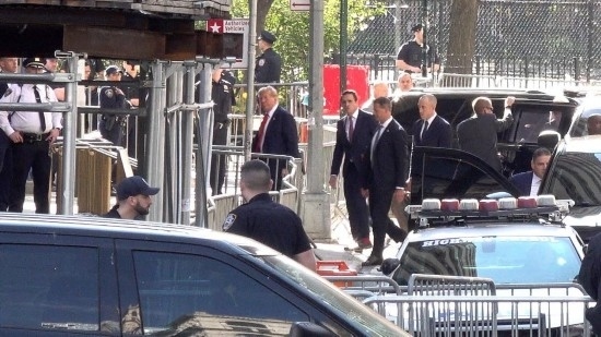 這張4月15日的視頻截圖顯示,美國前總統(tǒng)特朗普抵達(dá)紐約曼哈頓一家刑事法院出庭,出席關(guān)于其在2016年涉嫌偽造商業(yè)記錄以掩蓋向一名女演員支付“封口費”一案的審理。新華社記者丁曄攝