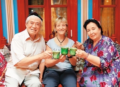 維娜和新疆喀什當(dāng)?shù)鼐用褚黄鸷炔琛?/p>