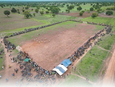 由中國援貝寧棉花技術(shù)援助項目組修建的足球場(無人機(jī)照片)。新華社記者 李亞輝攝