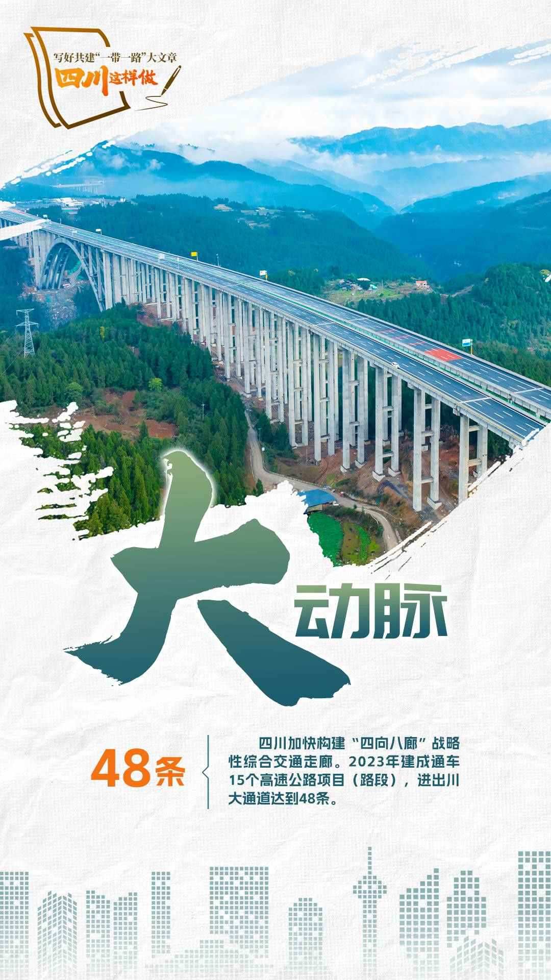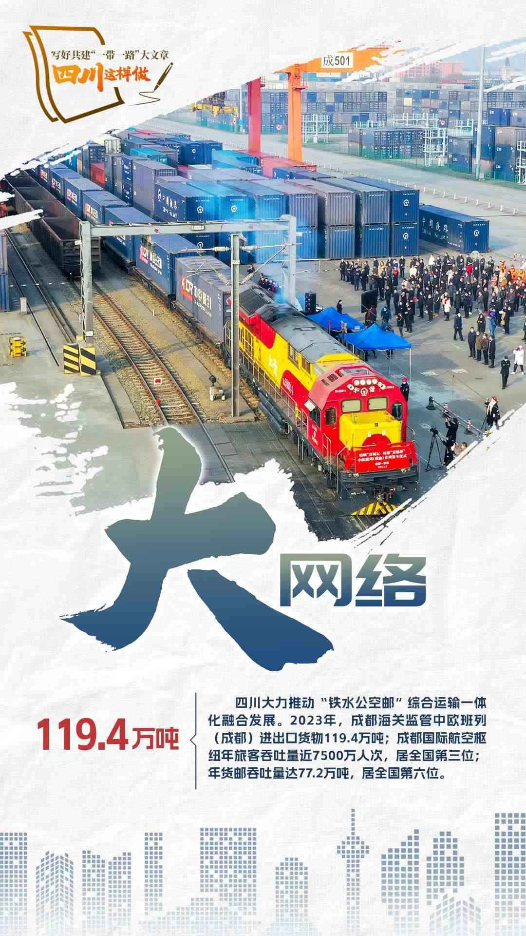 2023年,共建“一帶一路”走過第一個蓬勃十年,積極奔向更富活力的第二個“金色十年”。為推動共建“一帶一路”更高質(zhì)量、更高水平發(fā)展,宣布中國支持高質(zhì)量共建“一帶一路”的八項行動,包括構(gòu)建“一帶一路”立體互聯(lián)互通網(wǎng)絡(luò)、支持建設(shè)開放型世界經(jīng)濟(jì)、開展務(wù)實合作、促進(jìn)綠色發(fā)展、推動科技創(chuàng)新、支持民間交往、建設(shè)廉潔之路、完善“一帶一路”國際合作機(jī)制。2024年,我們將目光聚焦四川,作為內(nèi)陸開放的前沿陣地、西部大開發(fā)的戰(zhàn)略依托,看看第二個十年,四川如何寫好高質(zhì)量共建“一帶一路”大文章。