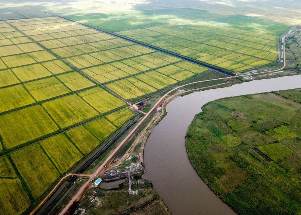這是莫桑比克萬寶莫桑農(nóng)業(yè)園的水稻田(2019年4月7日攝,無人機(jī)照片)。萬寶莫桑農(nóng)業(yè)園是中非合作的大型水稻種植項(xiàng)目,極大地緩解了莫桑比克糧食短缺問題。