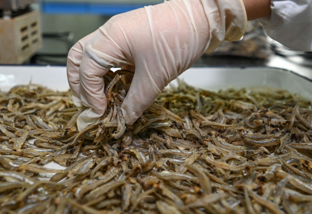 2023年6月28日,在湖南省岳陽市平江高新技術(shù)產(chǎn)業(yè)園,勁仔食品平江生產(chǎn)基地的化驗(yàn)員在實(shí)驗(yàn)室對進(jìn)口鳀魚進(jìn)行水分檢測。2023年6月,中國首次進(jìn)口的肯尼亞野生鳀魚產(chǎn)品在第三屆中非經(jīng)貿(mào)博覽會(huì)上亮相。近年來非洲對華農(nóng)產(chǎn)品出口增長迅速。