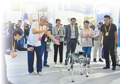 在服貿會現場,智能機器狗吸引很多關注。本報記者 劉玲玲攝