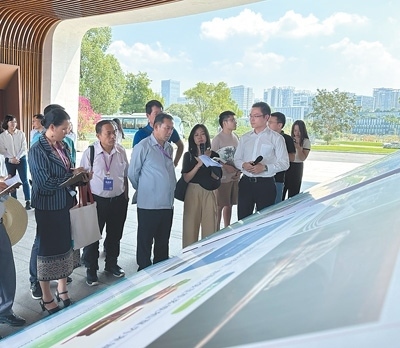 中老兩國記者采訪成都市鹿溪智谷綜合智慧能源項目。本報記者 孫廣勇攝