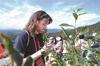 2024“鼓嶺緣”中美青年交流周期間,北京大學(xué)燕京學(xué)堂研一的美國(guó)學(xué)生葛逸思在為種植的友誼樹(shù)寫(xiě)上寄語(yǔ)。新華社記者 林善傳攝
