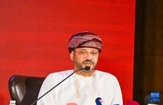1月8日,在阿曼首都馬斯喀特舉行的對(duì)話會(huì)上,阿曼外交大臣巴德?tīng)柊l(fā)表講話。新華社記者 劉磊 攝