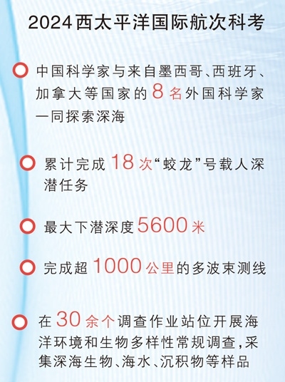 2024西太平洋國際航次科考由自然資源部中國大洋事務(wù)管理局統(tǒng)籌國家深?;毓芾碇行慕M織實施,是“數(shù)字化深海典型生境”大科學(xué)計劃下,首個在公海區(qū)域開展的聯(lián)合科考,也是首次有外國科學(xué)家搭乘“蛟龍”號開展深??瓶?。