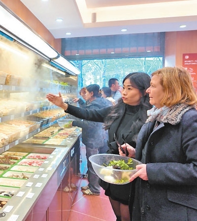 在柏林市中心,一家新開(kāi)不久的“楊國(guó)福麻辣燙”店門口,當(dāng)?shù)厝思{爾夫和幾個(gè)好友推門而入。店內(nèi)熱氣騰騰,空氣中彌漫著濃郁的骨湯香氣。在排隊(duì)取餐的人群中,不乏像納爾夫這樣的外國(guó)朋友。他們拿起夾子和菜盆,熟練地自選食材(見(jiàn)圖②,本報(bào)記者劉赫攝):藕片、菠菜、凍豆腐、寬粉、蝦和牛肉卷……幾分鐘后,一碗香氣四溢的麻辣燙被端上餐桌。
