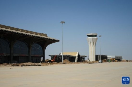 這是4月8日在伊拉克濟(jì)加爾省拍攝的由中國(guó)建筑集團(tuán)有限公司承建的納西里耶國(guó)際機(jī)場(chǎng)項(xiàng)目施工現(xiàn)場(chǎng)。新華社記者 段敏夫 攝