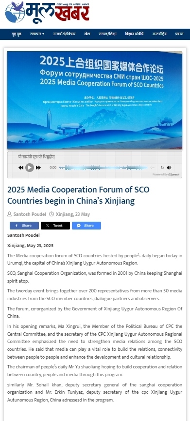 尼泊爾穆爾卡巴爾新聞網報道2025上合組織國家媒體合作論壇