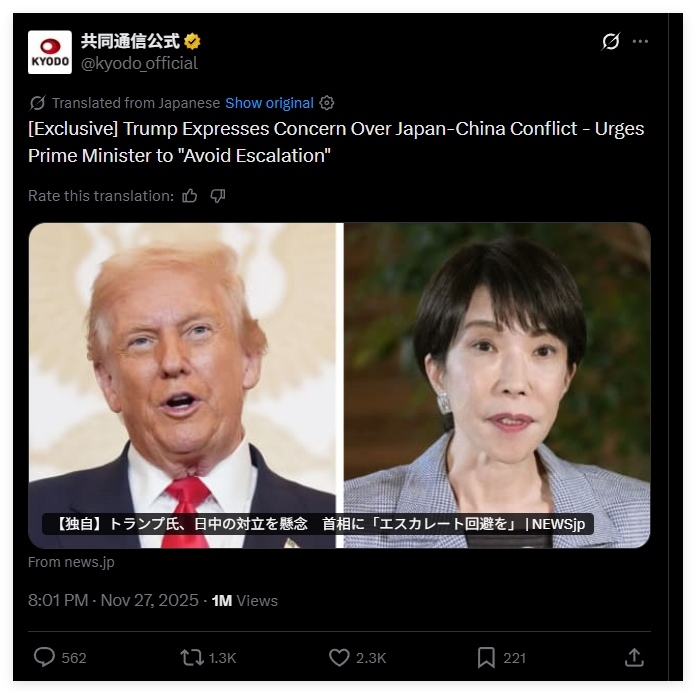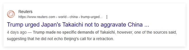 不過,盡管日本政府否認(rèn),包括路透社在內(nèi)的更多西方媒體,卻陸續(xù)通過其他信源印證了特朗普讓高市早苗不要刺激中國(guó)的情況。就連日本共同社也在報(bào)道中提及此事——當(dāng)然,共同社同樣遭到了日本右翼分子的圍攻。