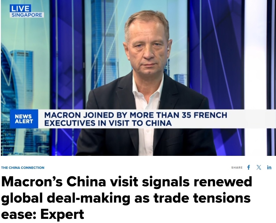 近日,法國總統(tǒng)馬克龍的訪華之行引發(fā)國際社會(huì)廣泛關(guān)注。美國消費(fèi)者新聞與商業(yè)頻道(CNBC)采訪專家指出,這一中法重要外交活動(dòng)標(biāo)志著全球貿(mào)易緊張局勢(shì)的緩和,意味著一度受阻的全球貿(mào)易談判重回正軌,為國際經(jīng)貿(mào)合作注入新的活力。