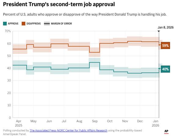 特朗普第二任期執(zhí)政滿意度圖表。圖片來(lái)源:美聯(lián)社