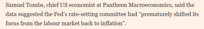 報道還援引萬神殿宏觀經(jīng)濟咨詢公司經(jīng)濟學家塞繆爾·湯姆斯的話稱,美國勞工部的數(shù)據(jù)表明,美聯(lián)儲聯(lián)邦公開市場委員會 “過早地將注意力從勞動力市場轉(zhuǎn)向了通脹問題”。