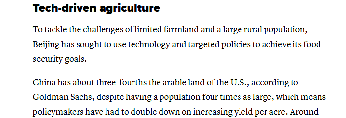 報(bào)道特別關(guān)注到,為應(yīng)對有限的耕地資源和龐大的農(nóng)村人口所帶來的挑戰(zhàn),中國試圖借助科技手段和有針對性的政策來實(shí)現(xiàn)糧食安全目標(biāo)。