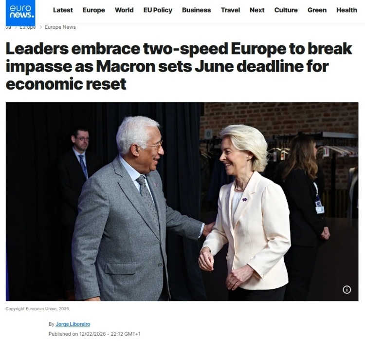 《政治報》網(wǎng)站歐洲版的報道評論稱,歐盟一直以其成員國團(tuán)結(jié)一致向前邁進(jìn)而自豪,那個時代已經(jīng)結(jié)束了。2月12日在比利時舉行的會議上,法國、德國、意大利等多國領(lǐng)導(dǎo)人支持,最早將于下個月的歐洲理事會上形成一項計劃,以簽署組成更小團(tuán)體的倡議。各國政府表示,由于歐洲的許多想法陷入優(yōu)柔寡斷和不和諧之中,歐洲的競爭優(yōu)勢正在逐漸消失,因此他們感到一種緊迫感。