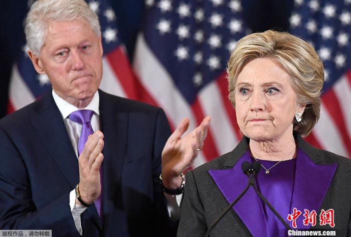 資料圖:美國前國務(wù)卿希拉里·克林頓及其丈夫、美國前總統(tǒng)比爾·克林頓。