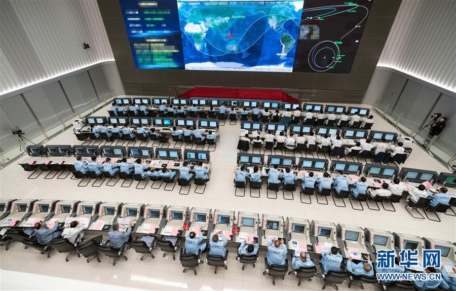 10月9日,在北京航天飛行控制中心,航天科技人員在現場工作。新華社記者才揚攝