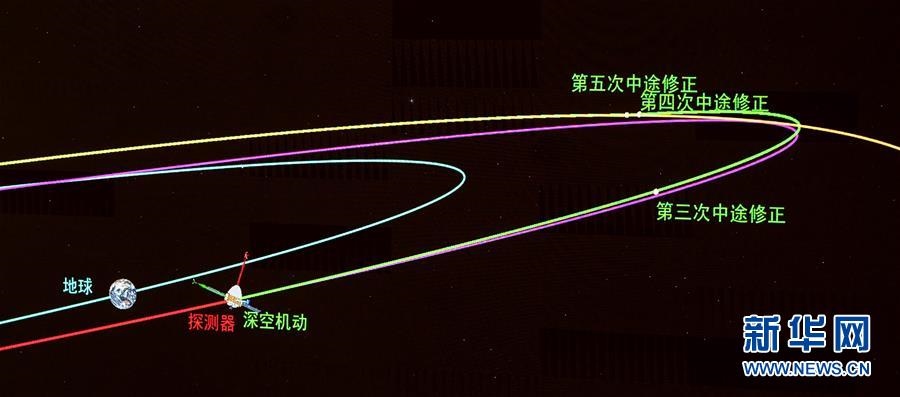“就像汽車從一條高速公路轉向另一條高速公路時,需要打方向盤變道一樣?!睂<医榻B,為了減小飛行偏差,使探測器沿著預定的軌道飛行而進行的軌道控制稱作修正。改變探測器當前軌道,使其進入一條新的軌道而進行的軌道控制稱作機動。此次軌道機動在距離地球大約2940萬千米的深空實施。