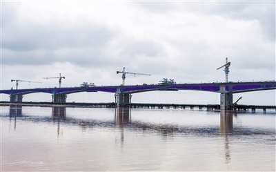 10月5日凌晨,由內(nèi)蒙古高路公司投資,中交二公局承建,包茂高速公路昭君黃河特大橋主橋雙幅順利合龍。昭君黃河特大橋橫亙于黃河,氣勢宏偉,蔚為壯觀,大橋采用雙向4車道高速公路標準建設(shè),全長4300米,分北岸灘橋、北岸跨堤橋、主橋、南岸灘橋、南岸跨堤橋五部分。(王曉博 攝)