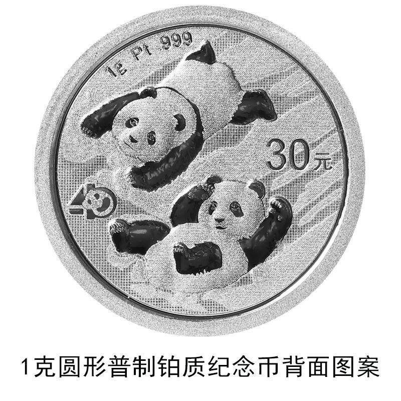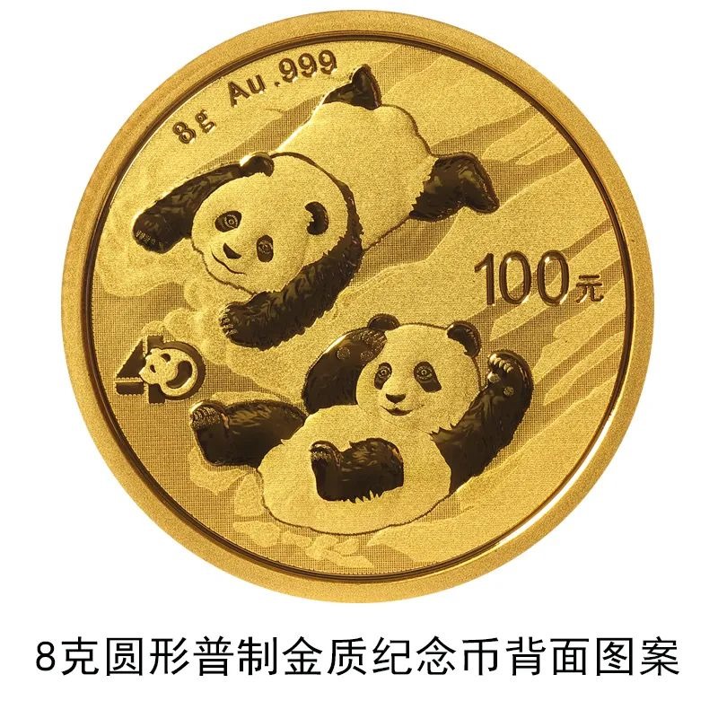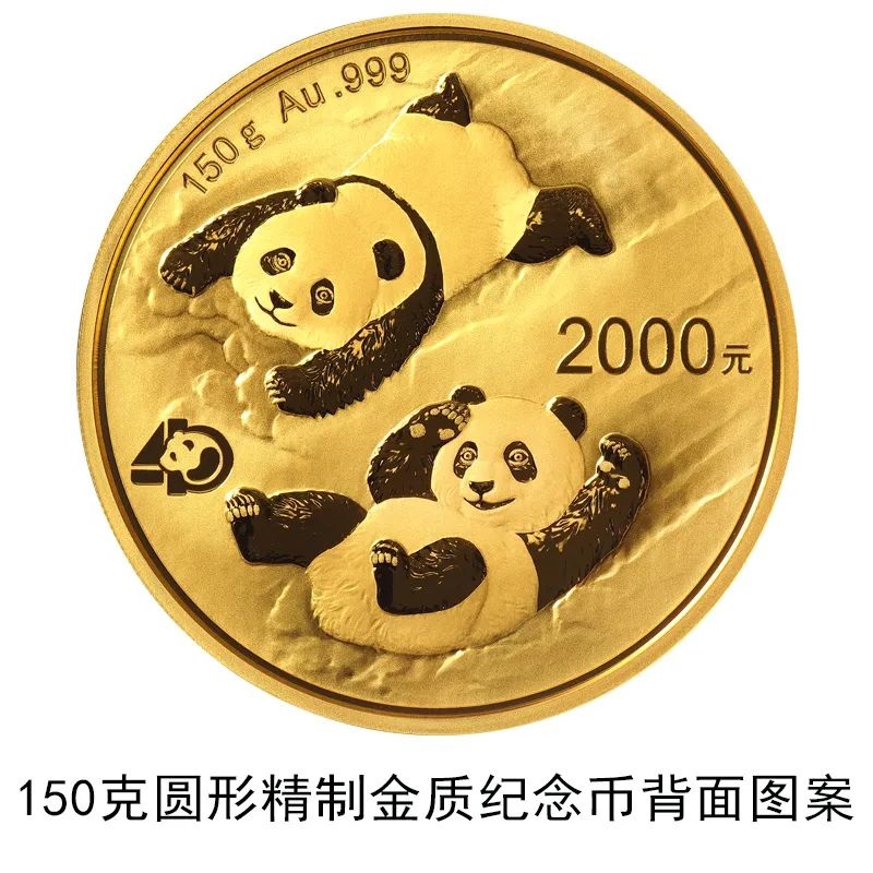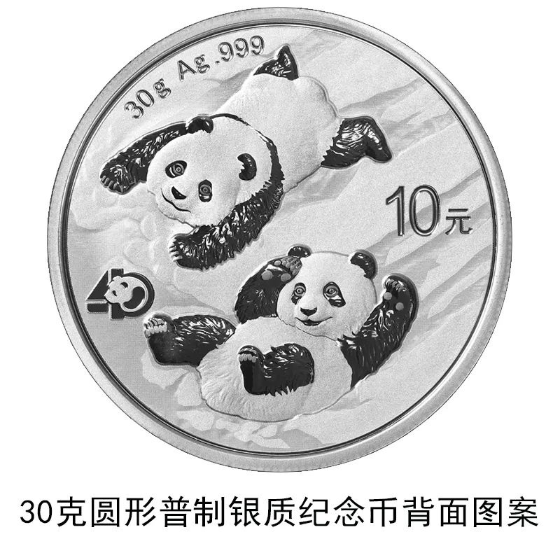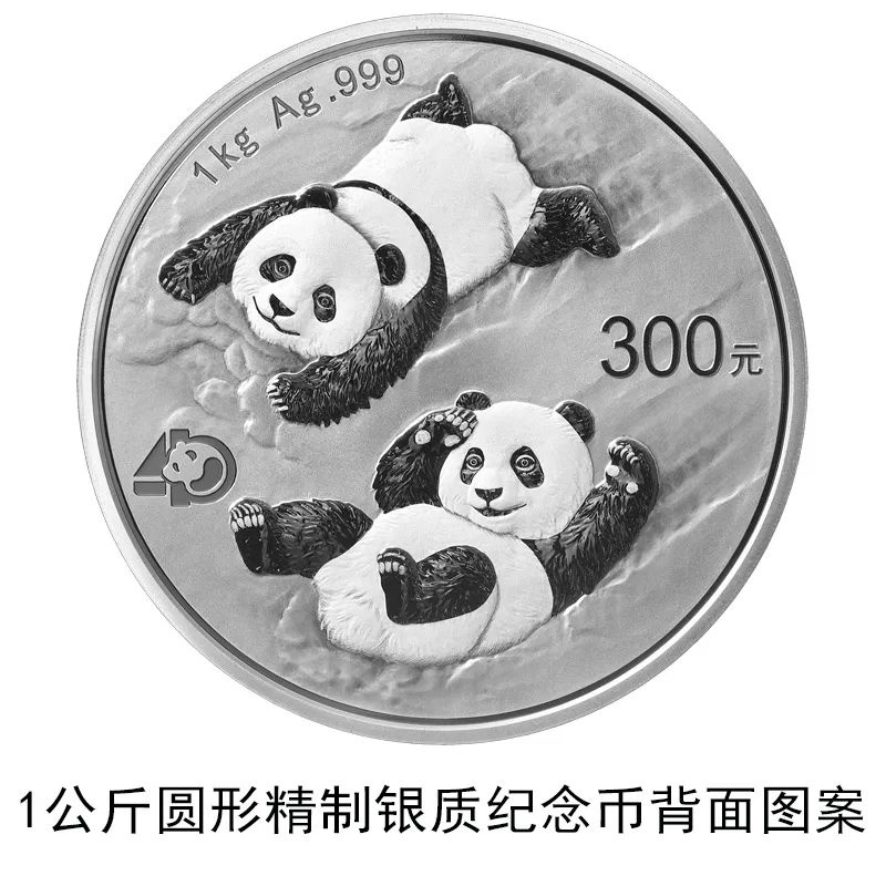 該套貴金屬紀念幣正面圖案均為北京天壇祈年殿,并刊國名、年號;背面圖案均為大熊貓滑雪嬉戲場景,輔以“熊貓金幣發(fā)行40周年標識”元素,并刊面額、重量及成色。