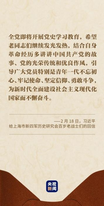 習(xí)近平總書(shū)記在回信中說(shuō):“你們青年時(shí)代就投身革命,為黨和人民事業(yè)英勇奮斗,期頤之年仍心系黨史宣傳教育,深厚的愛(ài)黨之情令人感佩?!?/p>