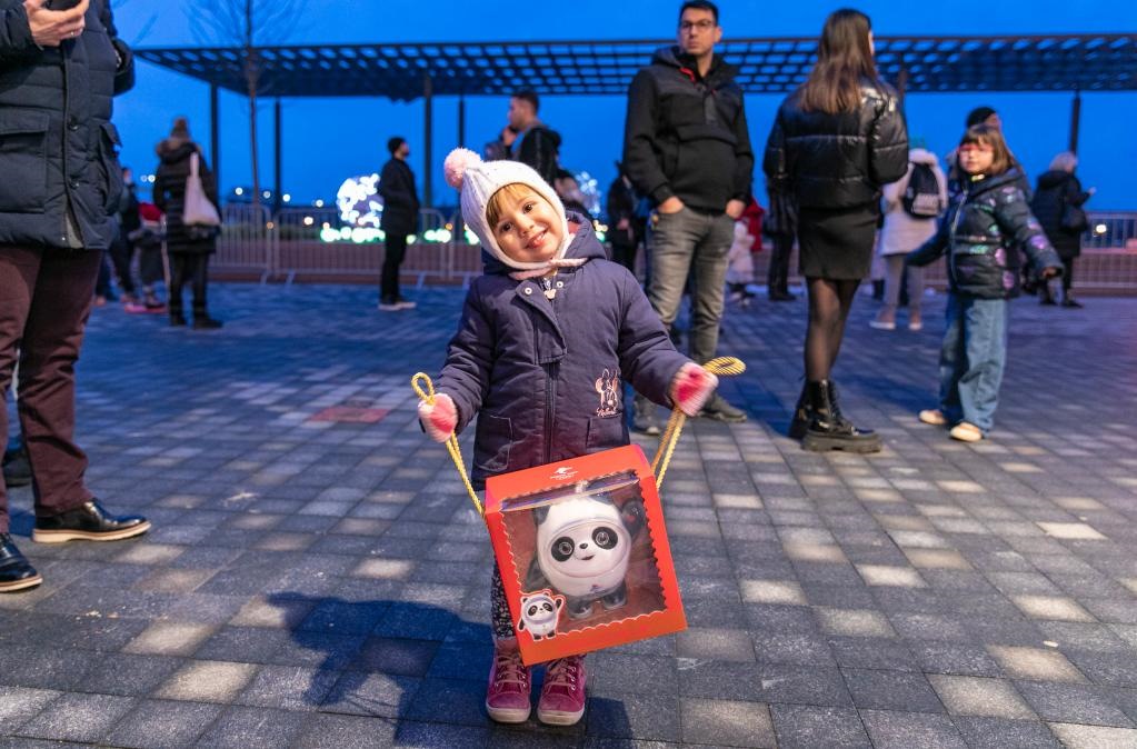 1月31日,在塞爾維亞貝爾格萊德舉行的中國(guó)燈展上,一名兒童手捧北京冬奧會(huì)吉祥物“冰墩墩”。新華社發(fā)(王韡攝)