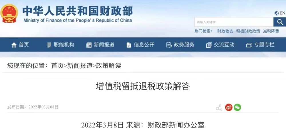 留抵退稅是什么?財(cái)政部這樣解答