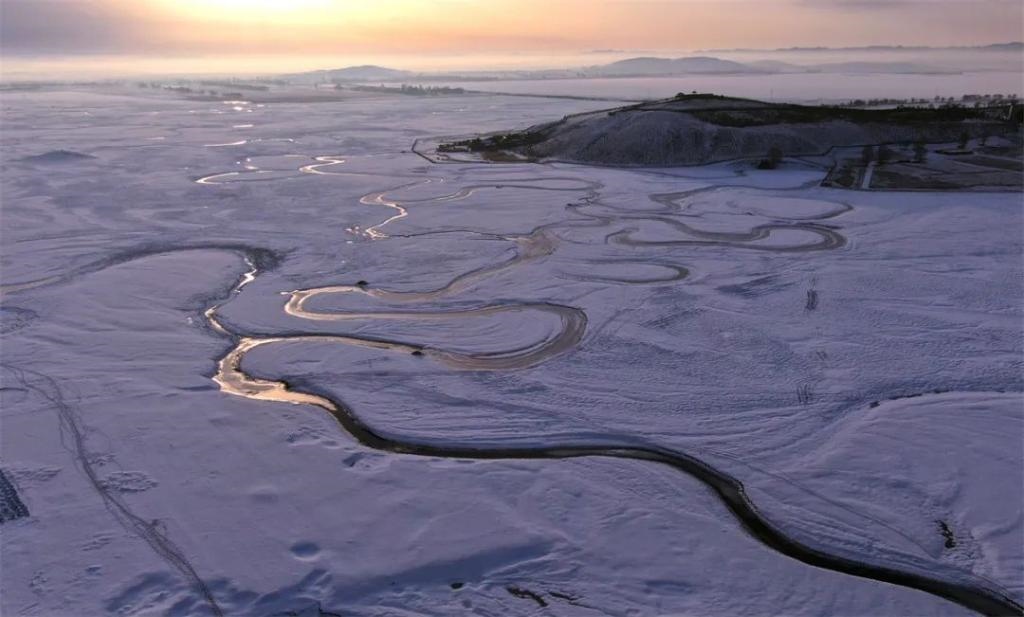 這是位于張家口市沽源縣的冬季閃電河濕地冰雪風光(2021年3月13日攝,無人機照片)。新華社發(fā)