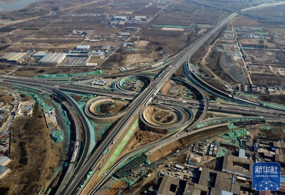 12月15日,工人在石家莊市北三環(huán)與復(fù)興大街互通工程建設(shè)工地施工(無人機照片)。 新華社記者 楊世堯 攝