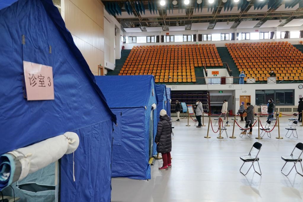 這是2022年12月24日拍攝的北京市西城區(qū)廣安體育館簡(jiǎn)易發(fā)熱門診。新華社記者 張晨霖 攝