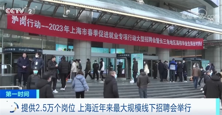 2月25日,“2023年上海市春季促進就業(yè)專項行動大型招聘會暨長三角地區(qū)高校畢業(yè)生擇業(yè)對接會”舉行。這次招聘會是2020年以來上海舉辦的最大規(guī)模的線下招聘會,1200余家招聘單位提供招聘崗位超過2.5萬個。