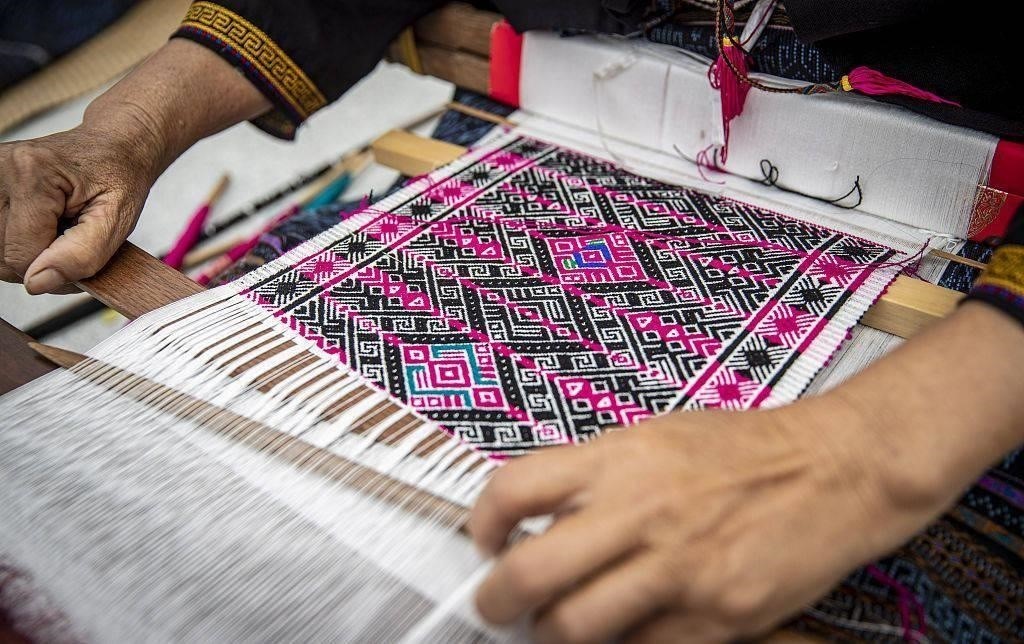“九仙織女下凡間,開(kāi)創(chuàng)黎錦三千年?!崩枳鍍号种械睦桢\紡、染、織、繡技藝,是國(guó)家級(jí)非物質(zhì)文化遺產(chǎn),被譽(yù)為中國(guó)紡織史上的“活化石”。