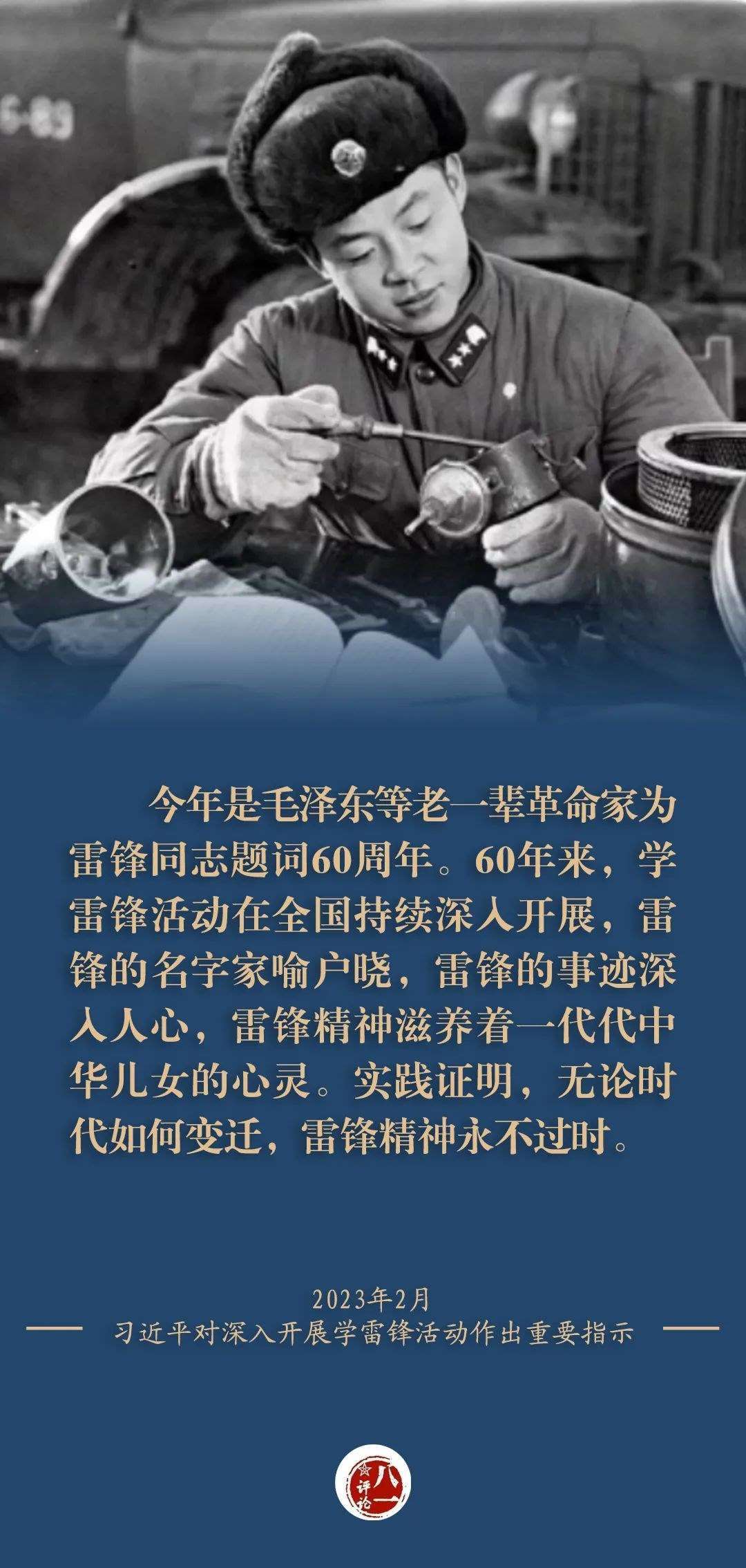 黨的十八大以來(lái),習(xí)近平總書(shū)記對(duì)弘揚(yáng)雷鋒精神作出一系列重要論述,深刻指出“雷鋒是時(shí)代的楷模,雷鋒精神是永恒的”“雷鋒精神,人人可學(xué);奉獻(xiàn)愛(ài)心,處處可為”。